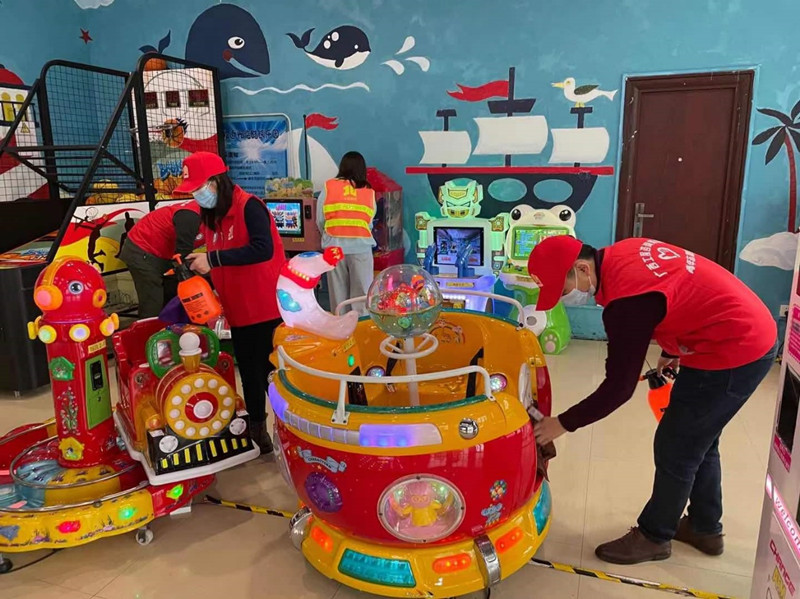 消毒人群活動、休憩的場地
