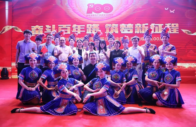 6月29日,“奮斗百年路 筑夢新征程”北投集團(tuán)慶祝中國共產(chǎn)黨成立100周年文藝匯演在廣西音樂廳舉行。廣西工程咨詢集團(tuán)、北投信創(chuàng)集團(tuán)、北投能源集團(tuán)聯(lián)合出演情景歌舞《壯鄉(xiāng)兒女頌黨恩》,突出少數(shù)民族元素、脫貧攻堅(jiān)工作,以壯話形式歌唱脫貧后壯鄉(xiāng)兒女的幸福生活,載歌載舞為建黨百年獻(xiàn)上誠摯祝福,同時(shí)將熱烈喜慶的氣氛推向高潮。