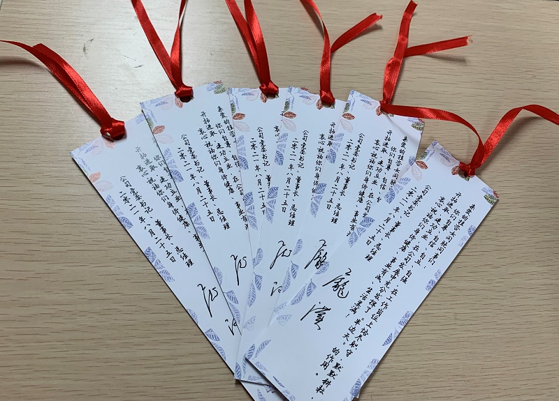 公司黨委書記、董事長(zhǎng)、總經(jīng)理龐漢為活動(dòng)紀(jì)念品定制版書簽寫寄語(yǔ)