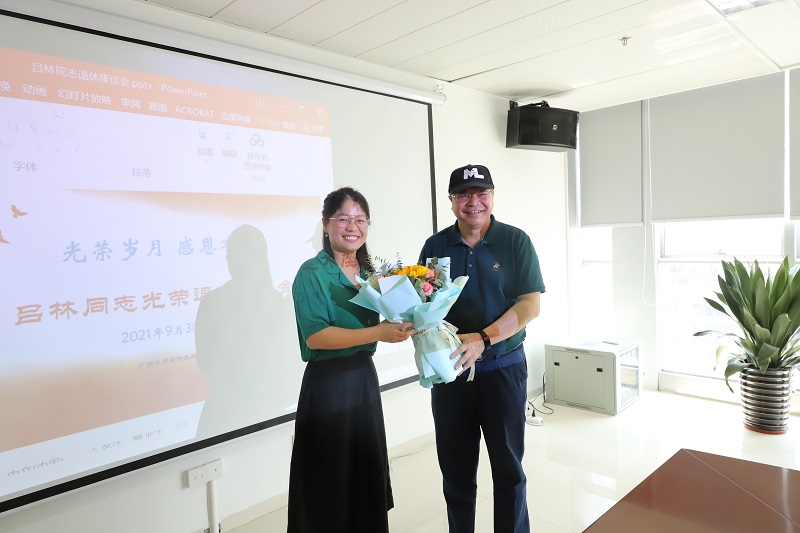 莫道桑榆晚,為霞尚滿天。9月30日上午,公司舉辦資深業(yè)務(wù)經(jīng)理呂林同志的退休座談會(huì)。公司黨委書記、董事長、總經(jīng)理龐漢,黨委副書記、工會(huì)主席左俊蘭,副總經(jīng)理盧德冠,副總經(jīng)理黃燦輝,總工程師王豐贊及相關(guān)部門負(fù)責(zé)人齊聚一堂,歡敘暢談,以最真摯的情誼祝賀呂林同志光榮退休。
